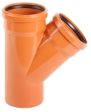 Тройник ПВХ для канализационных трубТройник 45° ПВХ D 110, 160, 200, 250, 315, 400, 500 Dn 110, 160, 200, 250, 315, 400, 500 |